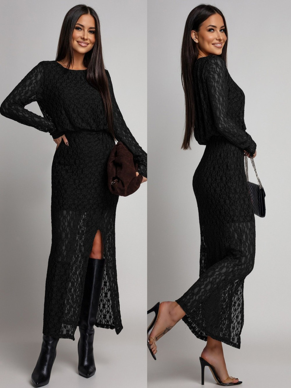Dopasowana sukienka koronkowa z długim rękawem Makena czarna