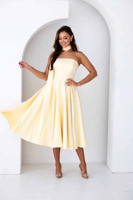 Elegancka gorsetowa mini Sukienka Stella bombka zółta