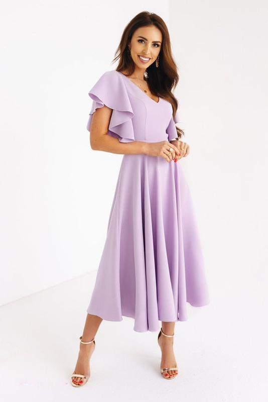Lora - suknia z koła z falbaniastym rękawem- lila