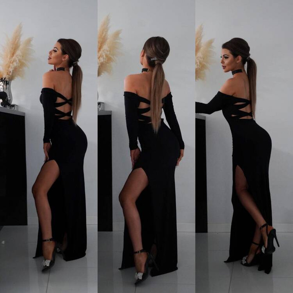 Elehancka Sukienka Glow maxi wieczorowa-czarny