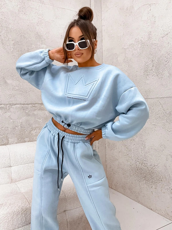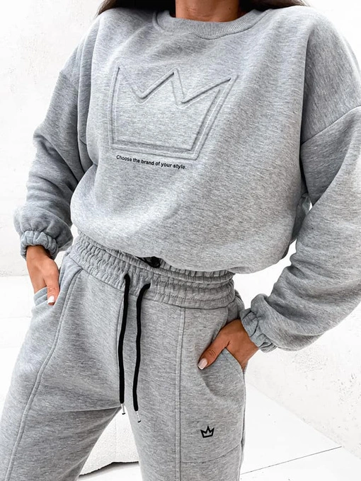 Komplet dresowy bluza + spodnie z naszywką korony -szary