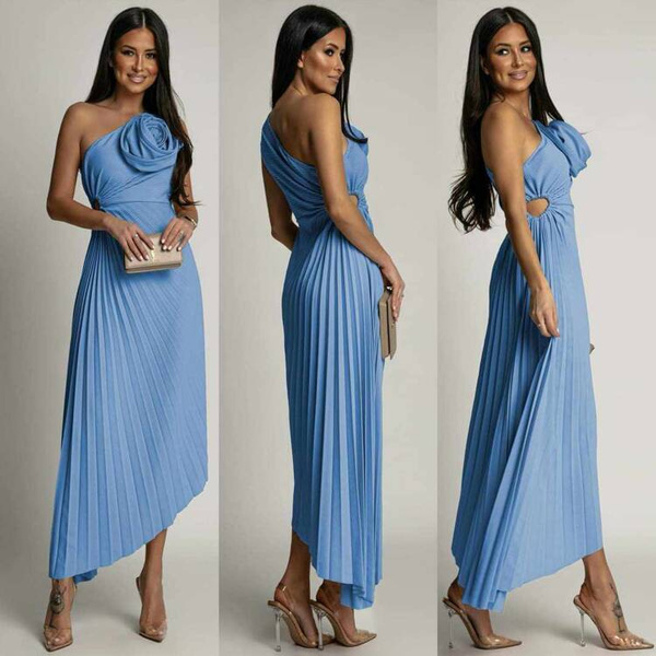 SUKIENKA PLISOWANA NA JEDNO RAMIĘ Rosalia- niebieski