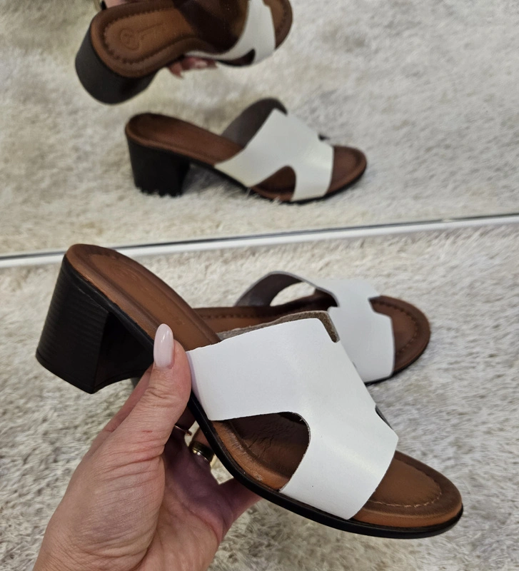 Eleganckie jasnobeżowe damskie czółenka półbuty na klocku Ada