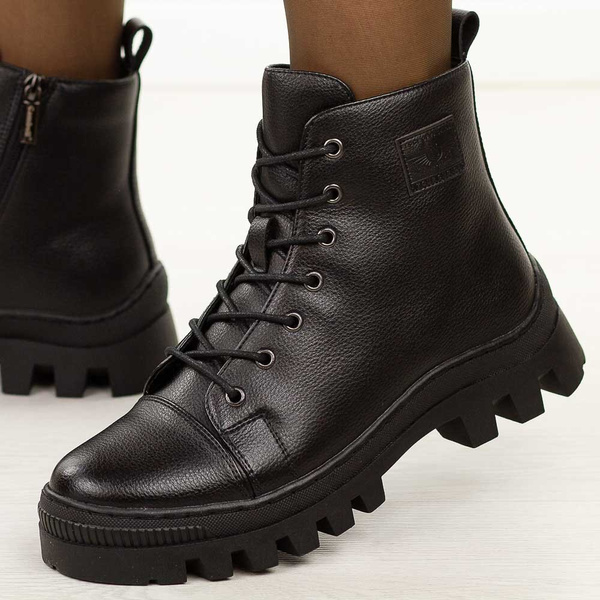( ilość produktów: 38 )Botki damskie Czarne skórzane trzewiki ocieplane trapery - czarne