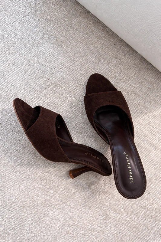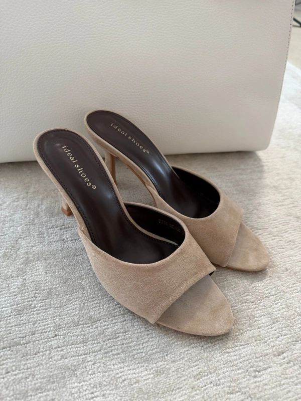 Klapki Camila na obcasie zamszowe jasnobeżowe