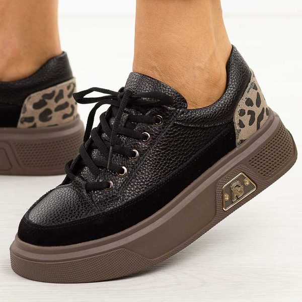 Sneakersy skórzane damskie - czarny