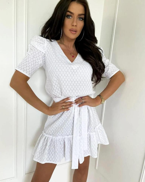 Andi Z Wiązaniami Na Ramionach Różowa Elegancka Mini Sukienka Falbaną
