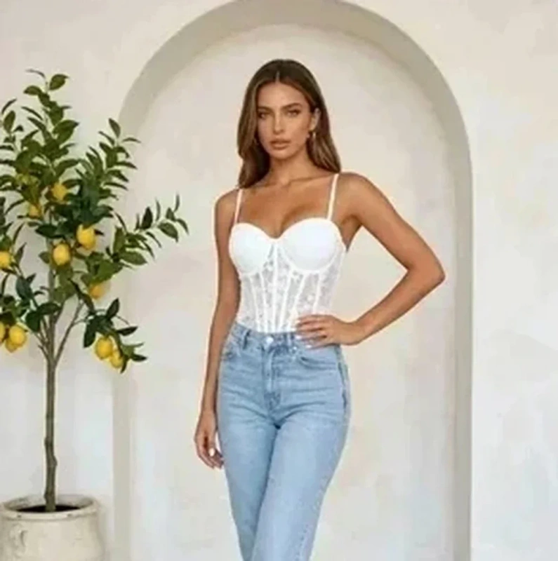 Gorset damski biały koronkowy z fiszbinami modelujący sylwetkę top bielizniany