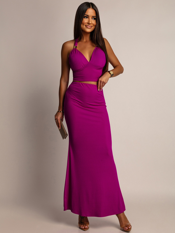 Komplet Spódnica midi + Top 2w1 Carlos fuksja