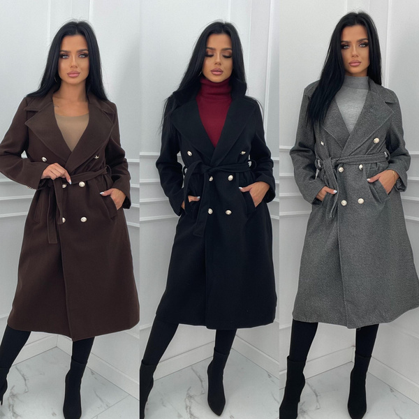 Klasyczny Wiązany Płaszcz Damski Rosi z guzikami - czekoladowy
