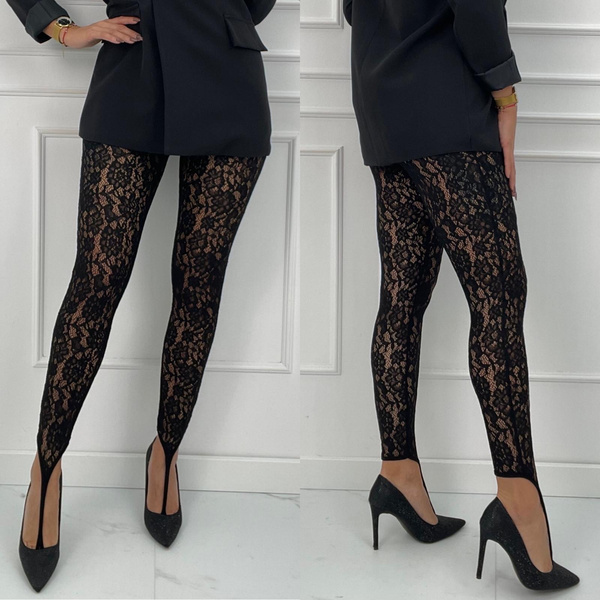 Czarne Legginsy Z Rozcięciem Przy Nogawce Noe