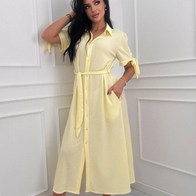Sukienka koszulowa midi żółta letnia z paskiem damska elegancka na lato