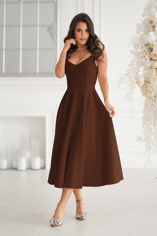 Elegancka Sukienka midi Sukienka PARADISE mokka