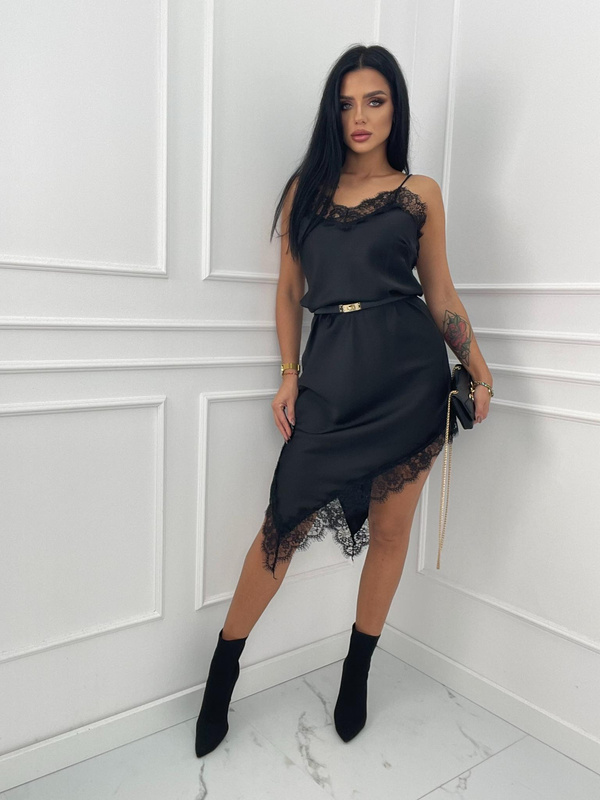 Sukienka wieczorowa Sara elegancja na jedno ramię z rozcięciem czarna