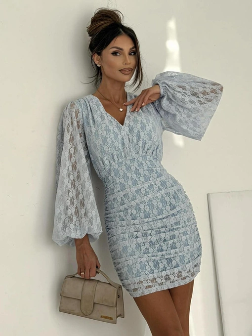 ELEGANCKA DOPASOWANA MINI SUKIENKA Z ODKRYTYMI RAMIONAMI Ola błękitny