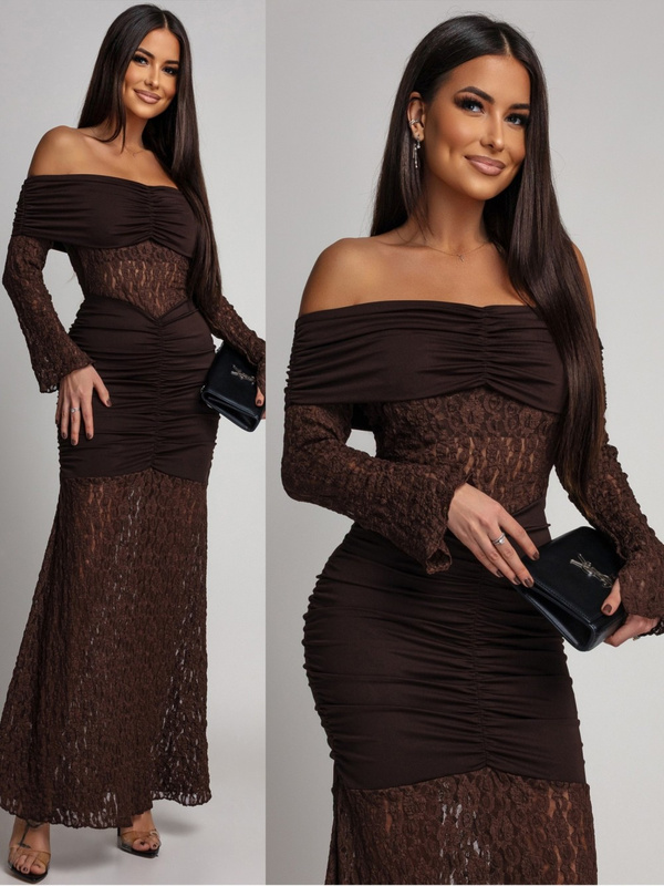 ELEGANCKA DOPASOWANA SUKIENKA MAXI Ashley czekoladowa