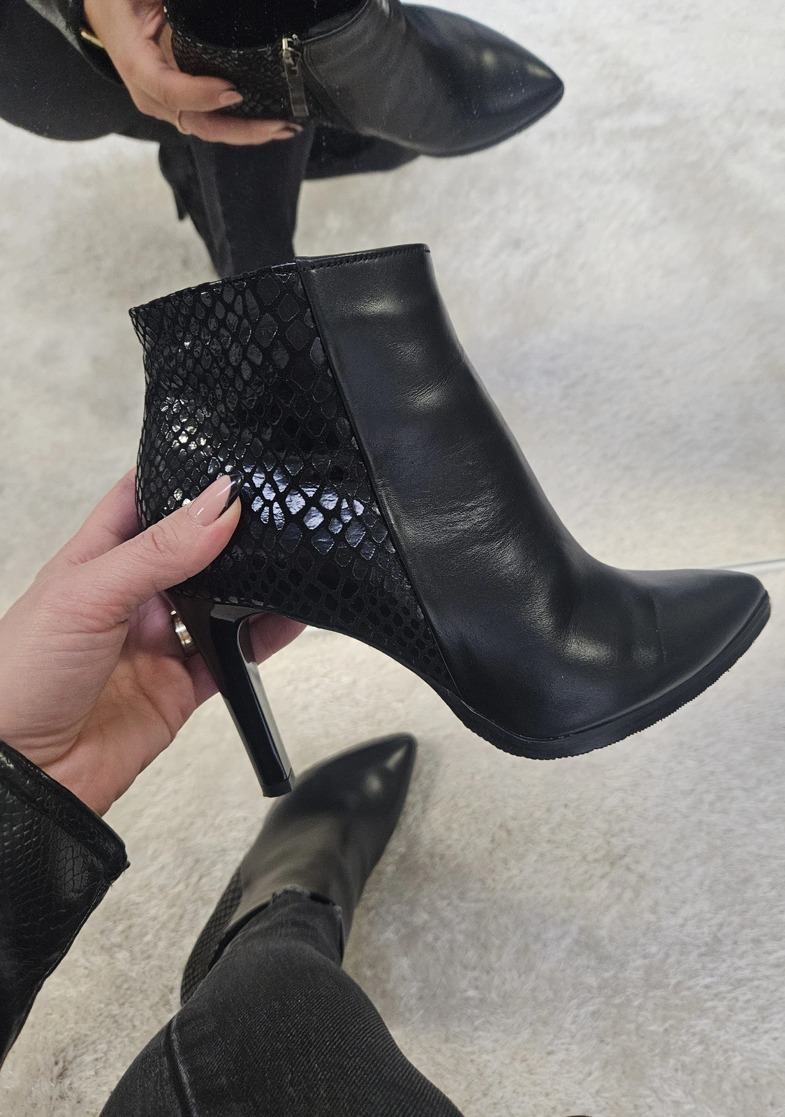 Czarne botki skórzane na szpilce