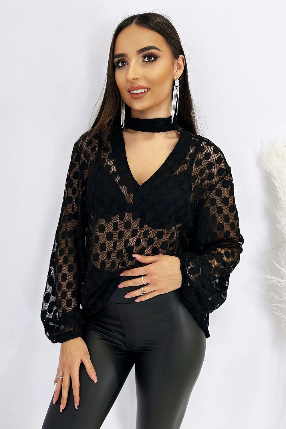 Szyfonowa Prześwitująca Bluzka W Grochy Sybil