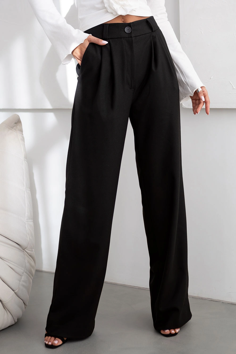 Czarne Szerokie Spodnie Z Kieszeniami Fine