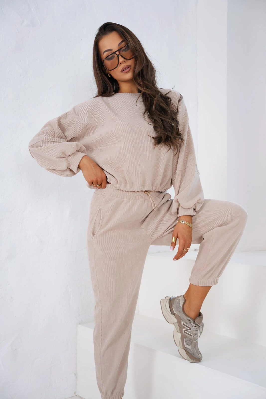 Zestaw prążkowany dresowy to idealne połączenie wygody i modnego wyglądu. Wykonany z miękkiego, elastycznego materiału o prążkowanej strukturze, zapewnia komfort noszenia na co dzień.