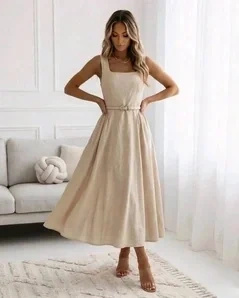 Pasek pozwala ściągnąć sukienkę w talii albo nosić ją luźniej - zależy od nastroju i okazji. Szerokie ramiączka trzymają się na miejscu, nie musisz ciągle poprawiać. Dół delikatnie się rozszerza, więc sukienka ładnie faluje przy chodzeniu. Różowy odcień jest pudrowy, pasuje do jasnej i ciemniejszej karnacji.