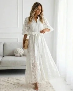 Miękka koronka, subtelne guziki z przodu i rozcięcie, które ułatwia chodzenie. Materiał dobrze leży i nie wymaga ciągłego poprawiania. Na wesele, chrzciny, komunię czy poprawiny - będziesz wyglądać elegancko bez przesady.