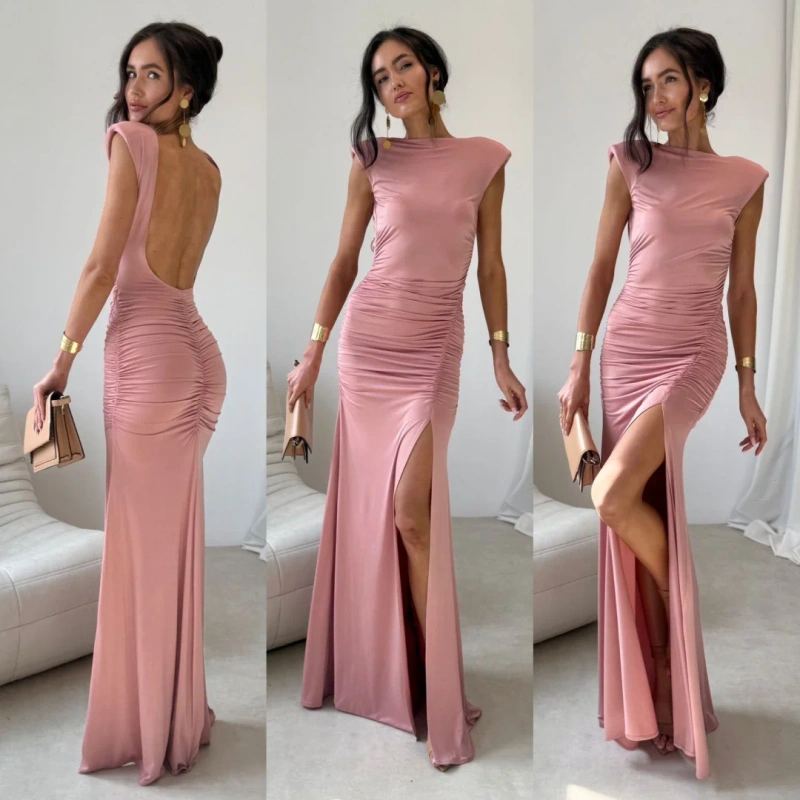 Sukienka Maxi Różowa Elegancka Wesele Lato Plisowana Zwiewna SISTERS