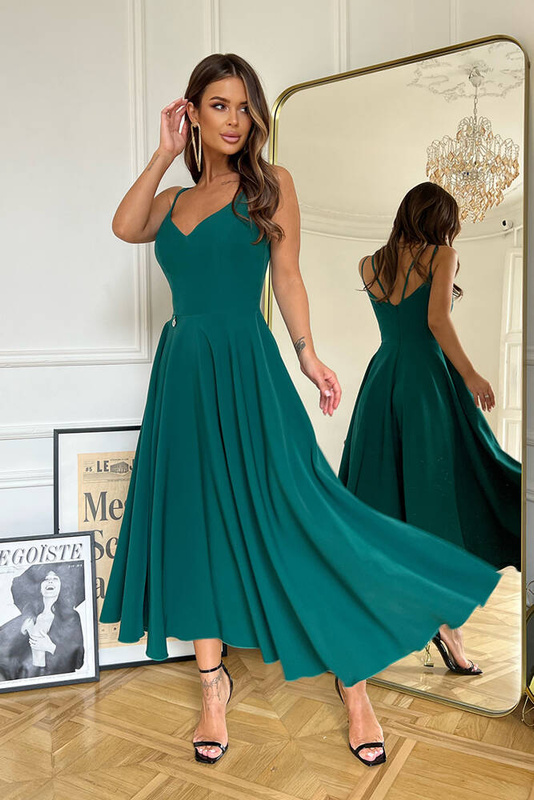 KOKTAJLOWA SUKIENKA Z FALBANĄ- zielony