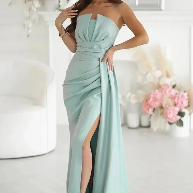 Sukienka Maxi Miętowa Wieczorowa Brokatowa Wesele Rozcięcie Gorset