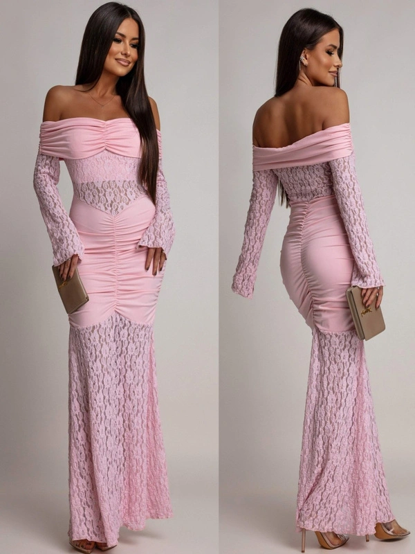 Marynarka damska różowa z koronką elegancki żakiet taliowany na guzik