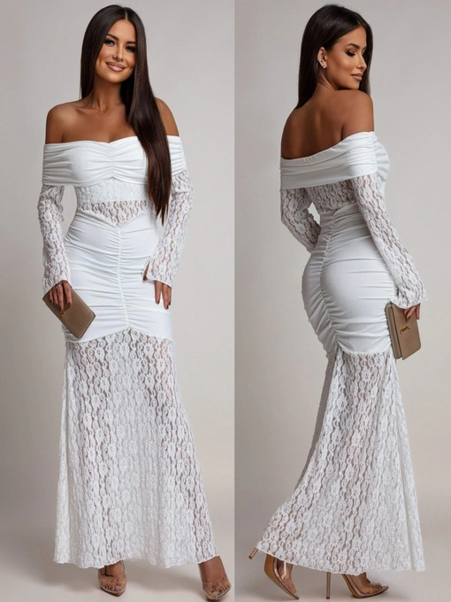 Marynarka damska biała elegancka z koronką żakiet oversize do biura