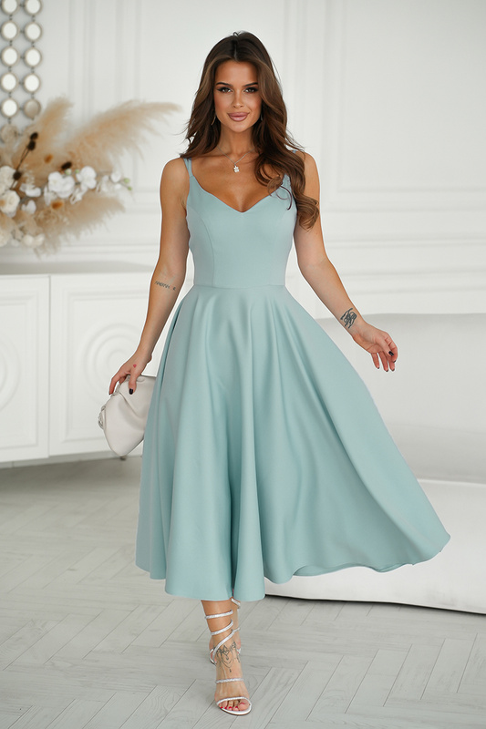 SUKIENKA MIDI NA RAMIĄCZKACH- szałwia