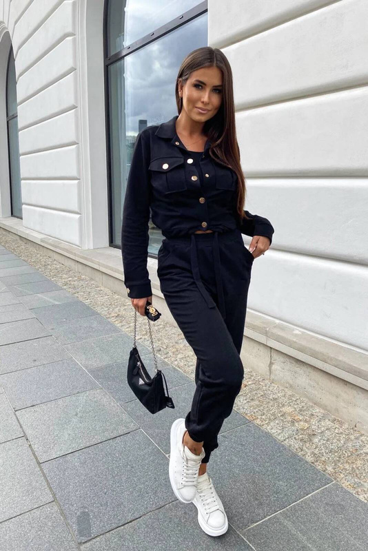 DRESOWY KOMPLET Z OZDOBNYMI GUZIKAMI Milano 3 częściowy zestaw dresowy czarny